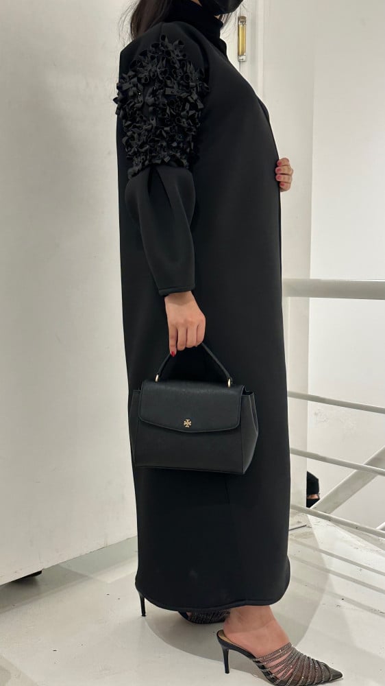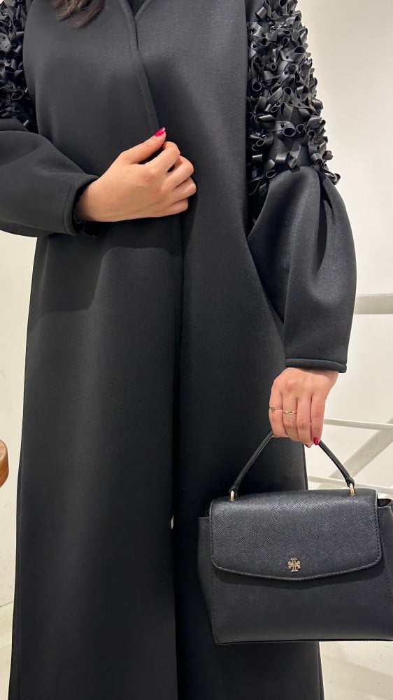 القماش كريب اسفنج الاكمام ديزاين بالجلد الاسود